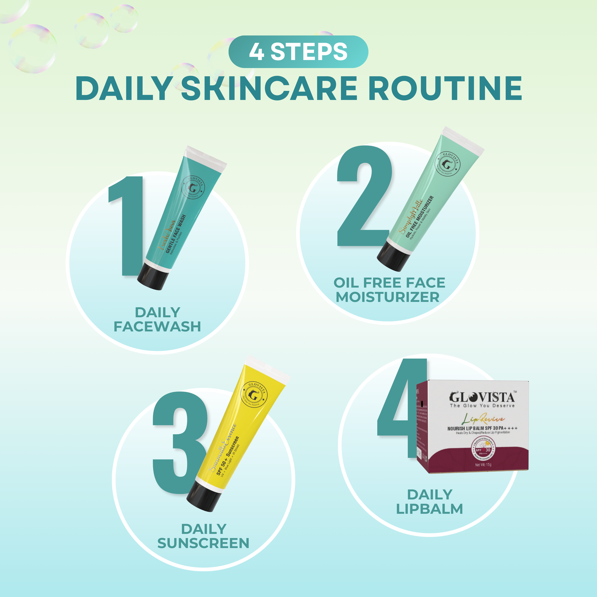 Glovista FreshAura Gentle Skin Cleansing Formula is designed for acne-prone and oily skin. Powered by Glycolic Acid, it unclogs pores and removes excess sebum, dirt, and impurities. Licorice Root Extract reduces pigmentation and dullness, while Aloe Vera & Vitamin E hydrate, repair, and soothe the skin.