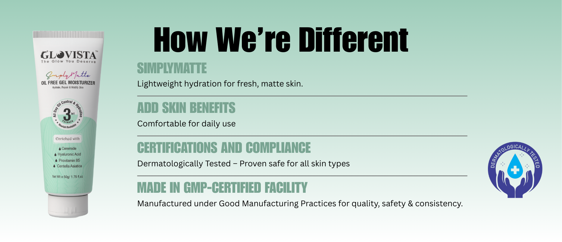 - Dermatologically tested, suitable for oily, acne-prone & combination skin