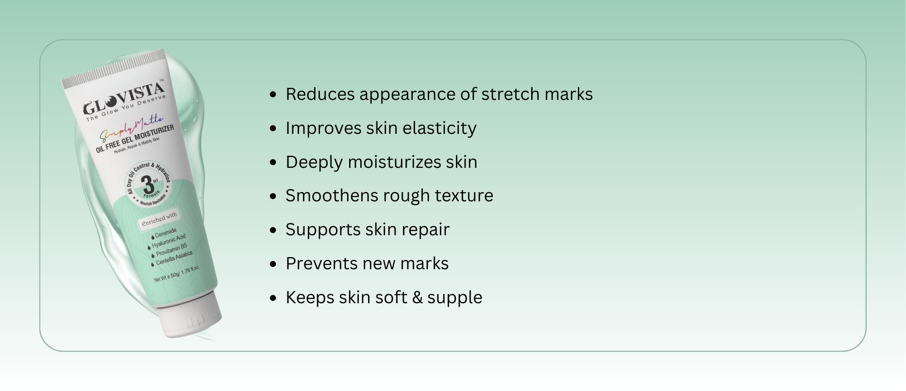 - Lightweight, oil-free gel moisturizer with Ceramides, Hyaluronic Acid & Niacinamide